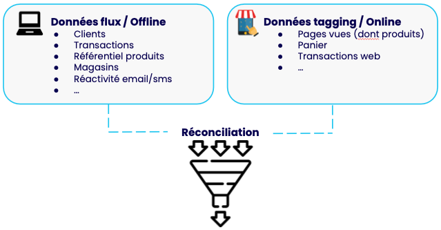 Pour obtenir une vision client complète, il est essentiel de collecter des données provenant de différentes sources. Cela peut inclure des données démographiques, des données comportementales, des historiques d'achat, des interactions sur les réseaux sociaux, des données de navigation sur le site web ou encore des données provenant des centres d'appels. Plus vous collectez de données pertinentes, plus votre vision client sera approfondie. D’où l’importance de bien réconcilier ses données !